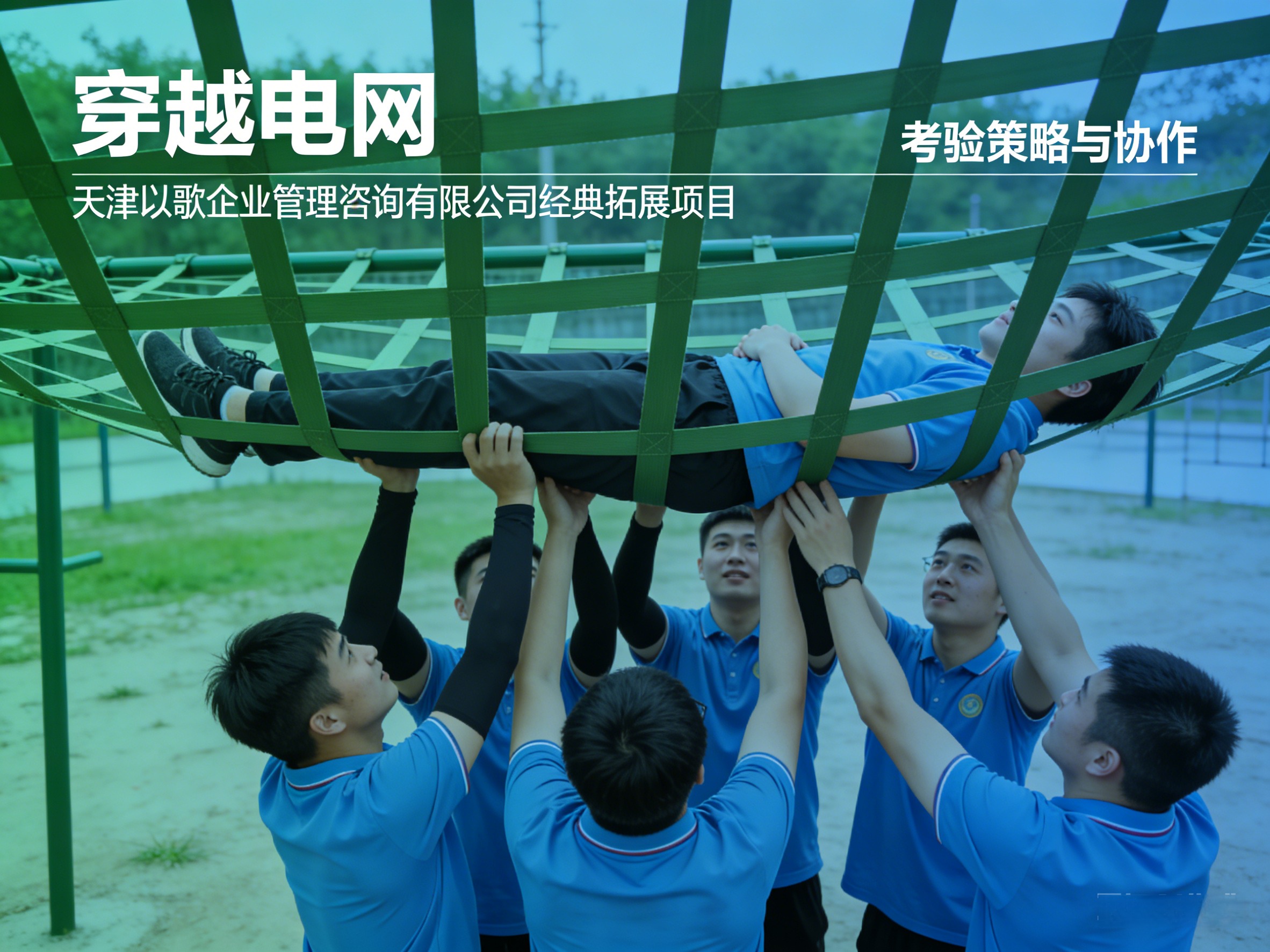 课程简述:模拟“电网逃生”场景,场地内设置高低、大小不同的“电网”(绳网),全体队员需在规定时间内,不触碰电网、不借助任何工具,仅依靠团队协作,将所有队员安全转移至电网另一侧。项目核心考验团队的分工协作、方案规划与应急处理能力,让队员学会合理分配资源、明确角色定位,体会“细节决定成败”的道理,同时提升团队的沟通效率与凝聚力,培养队员的责任担当与协作精神。